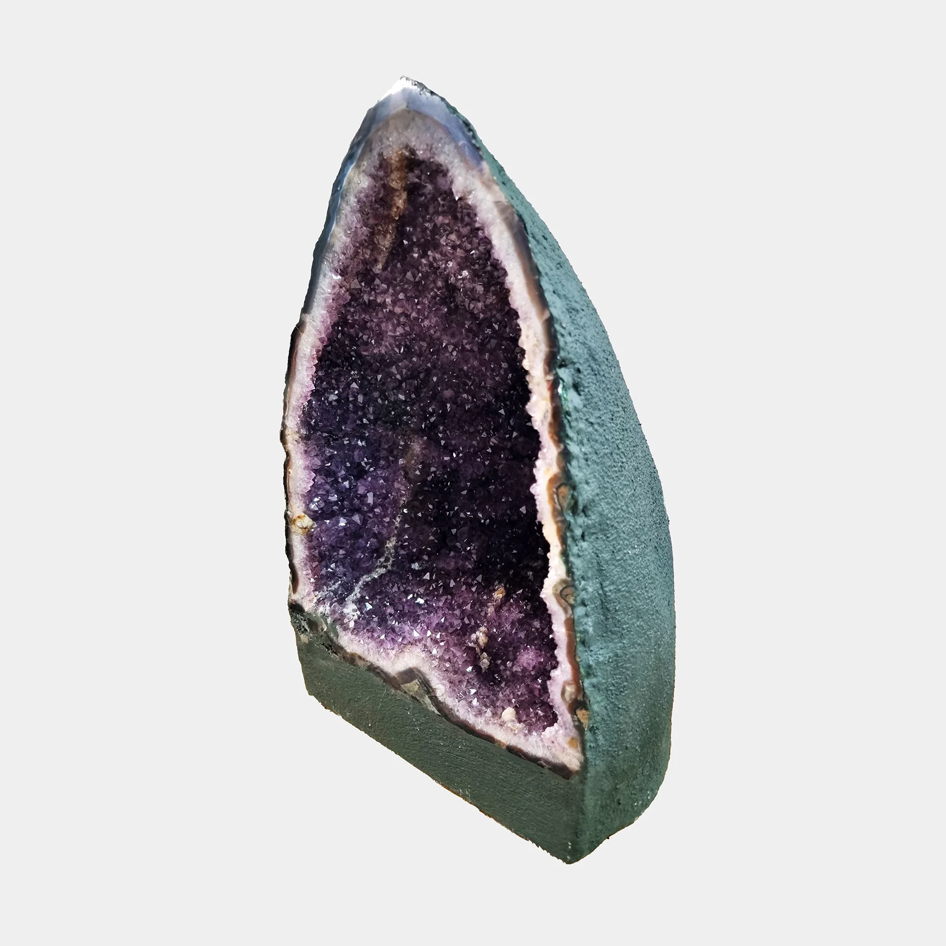 Amethyst Cathedral N°4 stands out for its clean, symmetrical form and rich coloration. Personally chosen from Brazil, it displays a vivid violet crystal core surrounded by soft lilac transitions and fine quartz layers.