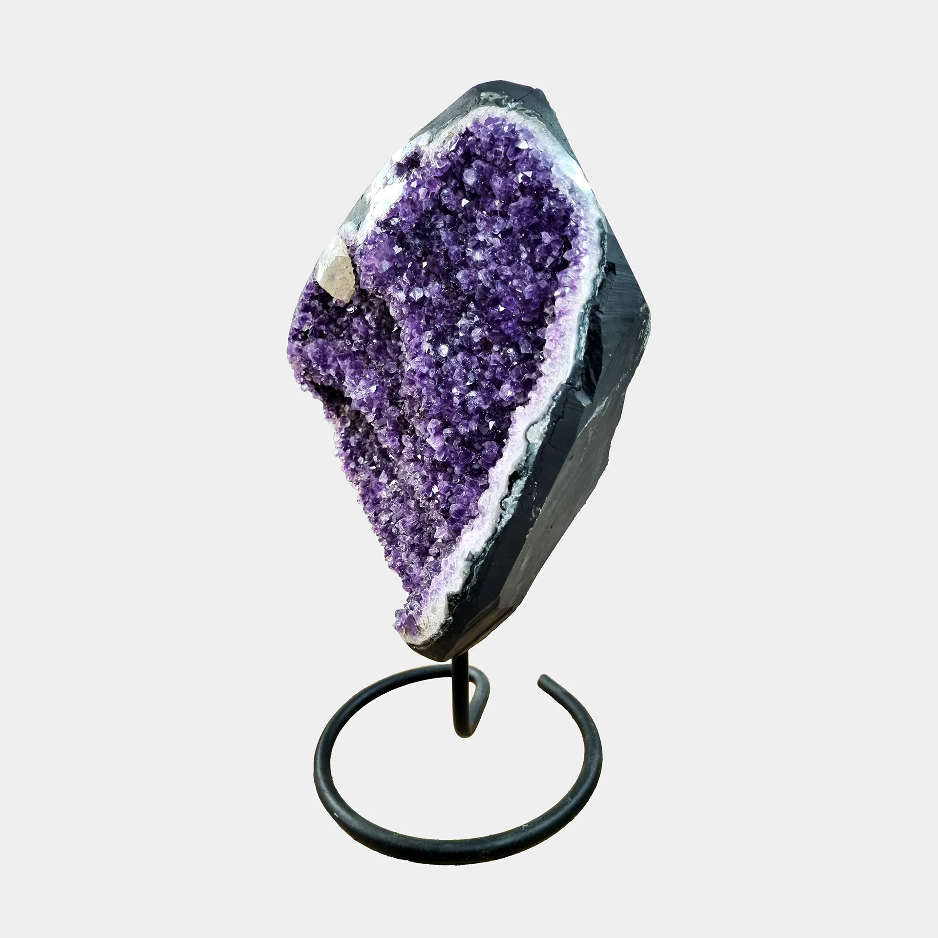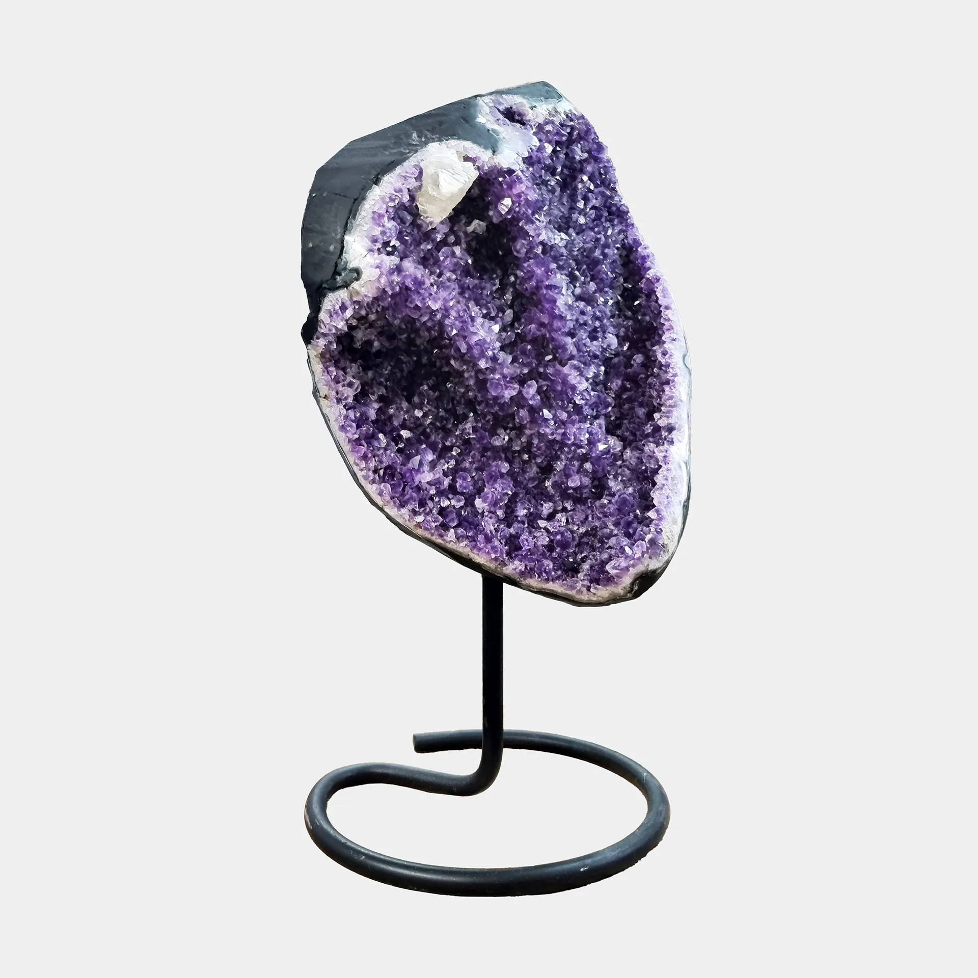 Mounted on an elegant black metal stand, each Amethyst is individually photographed and authenticated, ensuring you receive the exact piece shown. Beyond its aesthetic allure, Amethyst is revered for its balancing energy—believed to inspire calm, clarity, and spiritual harmony.