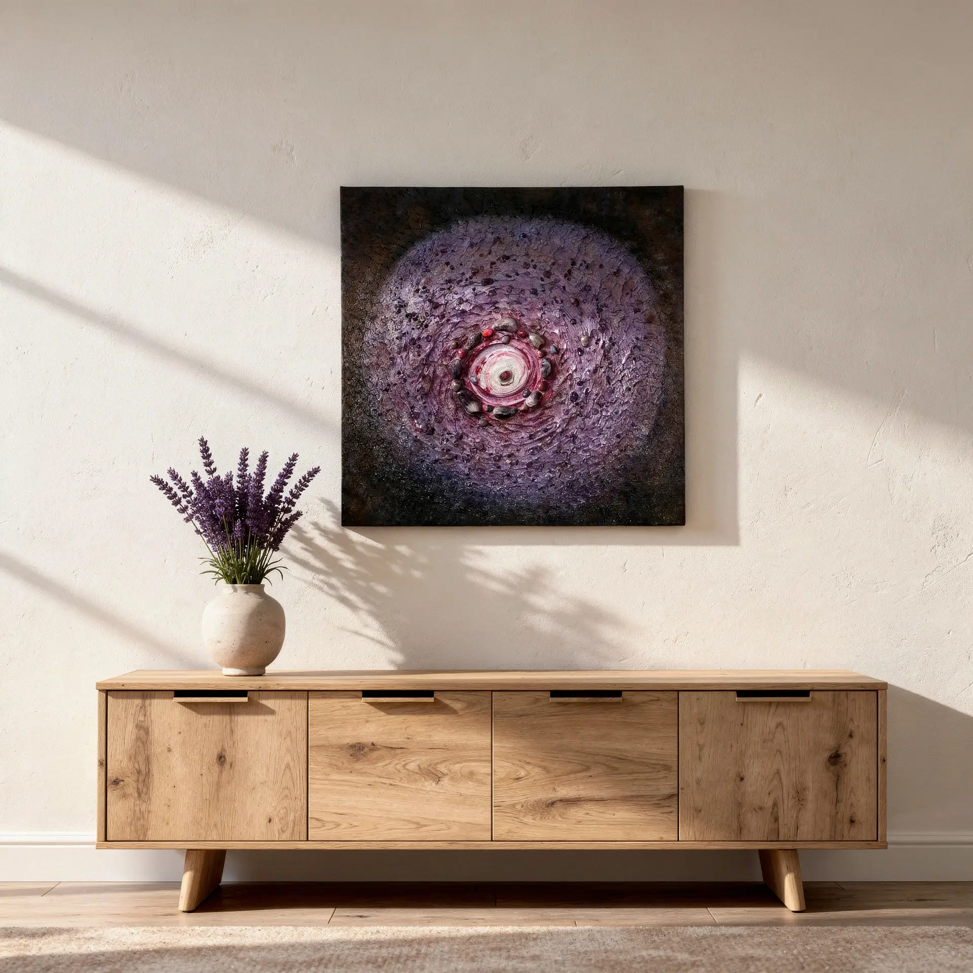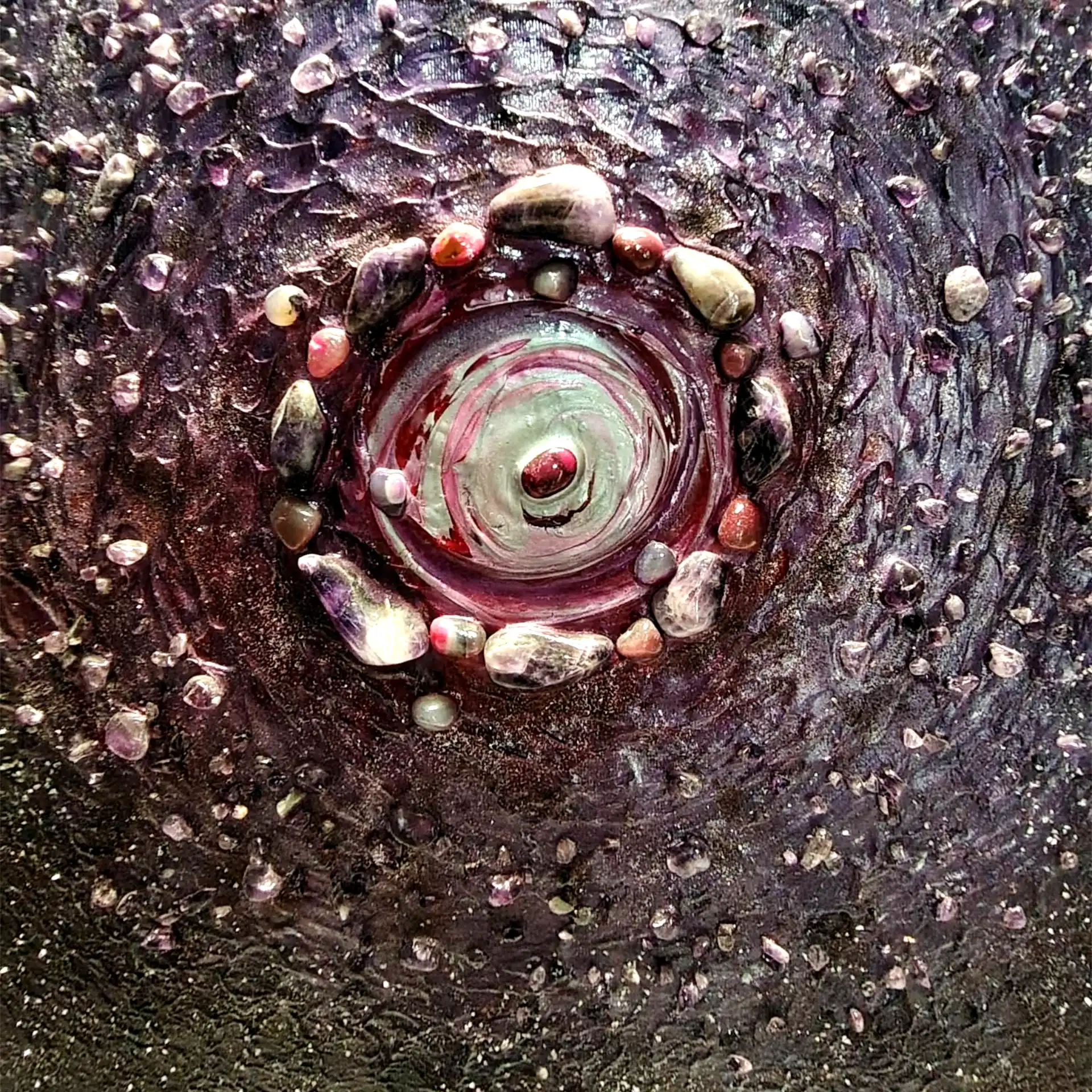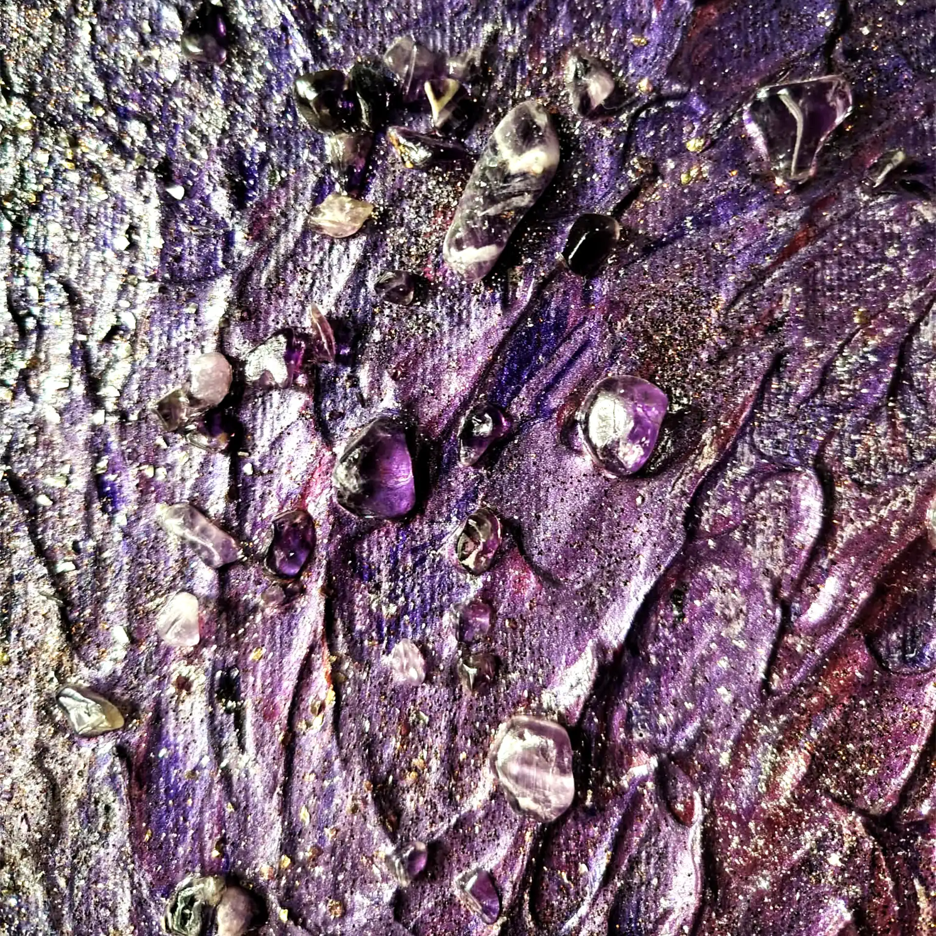 - Medium: real amethyst crystals, minerals, acrylic on canvas